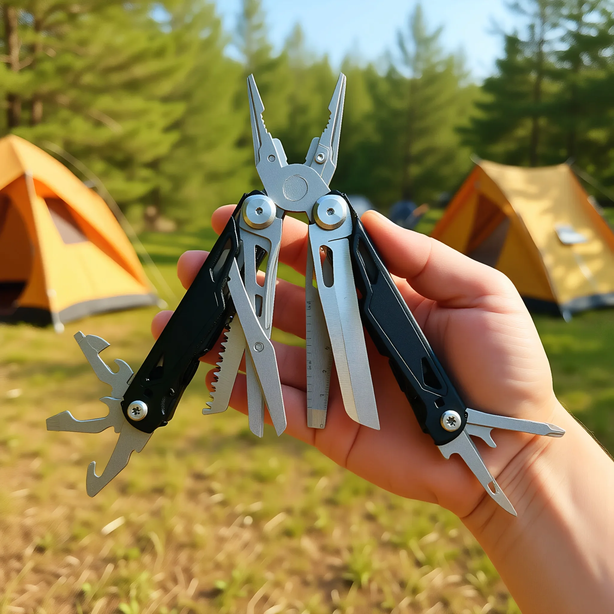 Be prepared for any outdoor adventure with this 27-in-1 multitool. Crafted from durable stainless steel, it combines pliers, screwdrivers, saw, spring scissors, and more — a must-have for camping, hiking, fishing, or emergency situations.