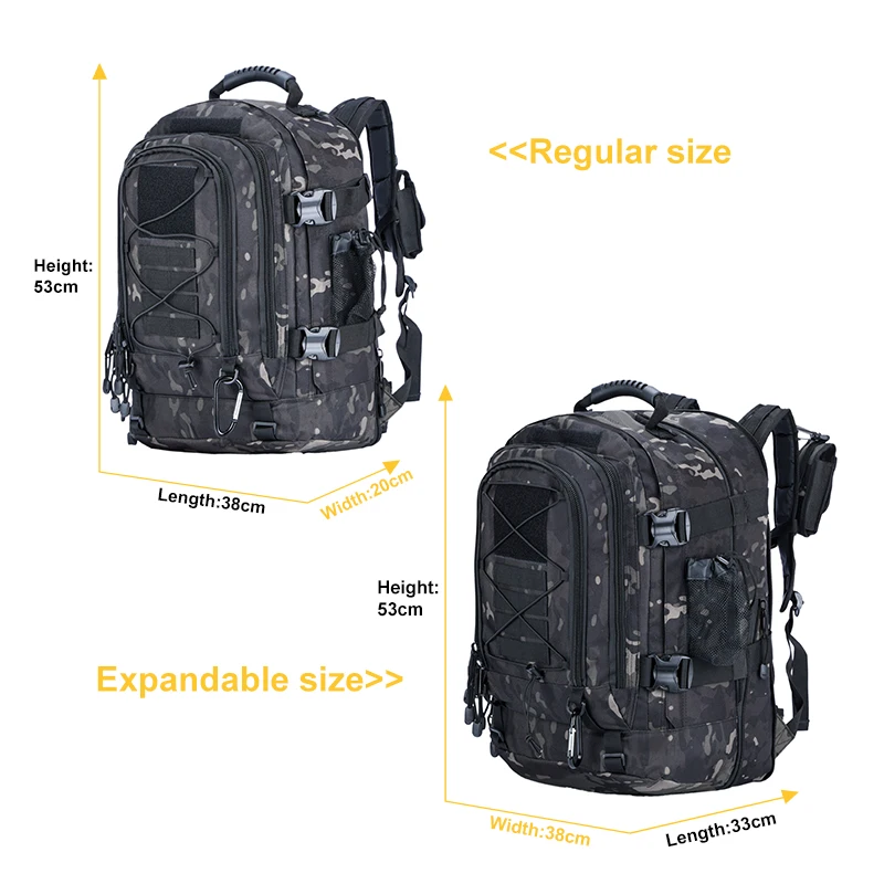 Gear up for any mission with this Tactical Military Backpack. Designed with MOLLE webbing and a spacious 3-day pack layout, it’s perfect for hiking, camping, travel, or tactical use. Built for durability and comfort, it keeps your essentials organized and easily accessible during extended outdoor adventures.