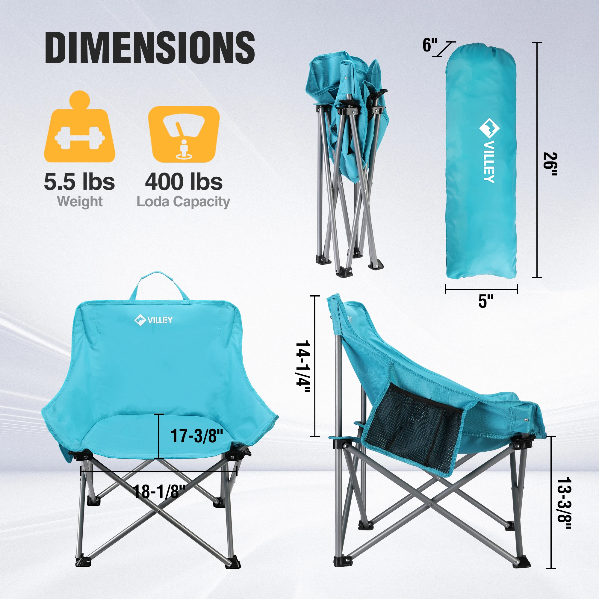 VILLEY Folding Camping Chair – Lightweight Portable Chair with Carry Bag for Beach, Lawn & Outdoors