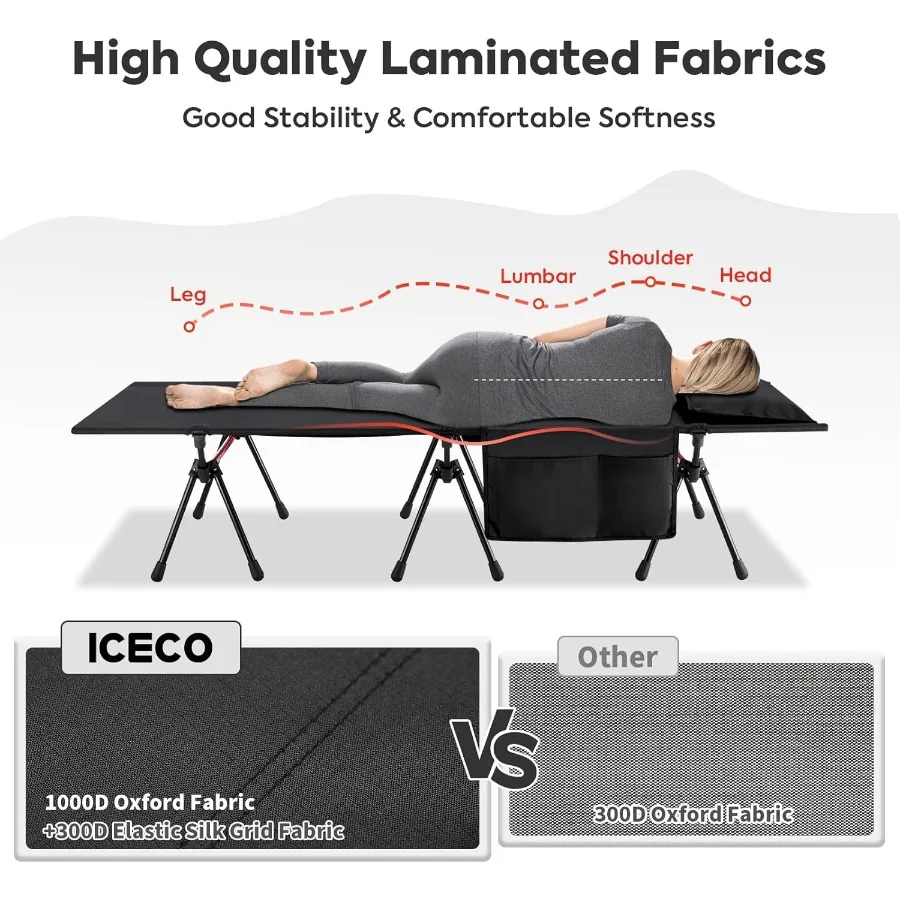 XL Camping Cot for Adults – Portable Folding Bed, Ultra-Stable Sleep Cot Supports 400 lbs